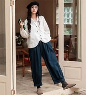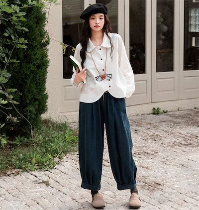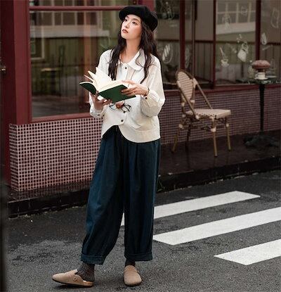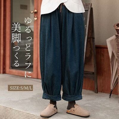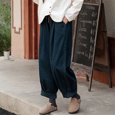 デニムパンツ レディース イージーワイドパンツ ボトムス パンツ ウエストゴム ゆったり 美脚 レトロ リラックス 秋 冬 無地 ガウチョ ポケット付 サルエルパンツ バルーン カジュアル 体型カバ