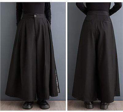 パンツ ワイドパンツ レディース きれいめ 切り替え ロング ガウチョパンツ ボトムス ズボン ワイドガウチョパンツ イージーパンツ 楽ちん フレアパンツ カジュアル 体型カバー 体型隠し ブラック
