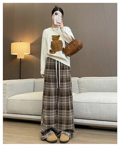 パンツ チェック パンツ レディース 秋冬 ワイドパンツ ガウチョパンツ チェック柄 ワイド ガウチョ 大きいサイズ ロングパンツ ストレートパンツ ボトムス ウエストゴム ポケット付き きれいめ カ