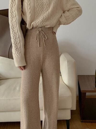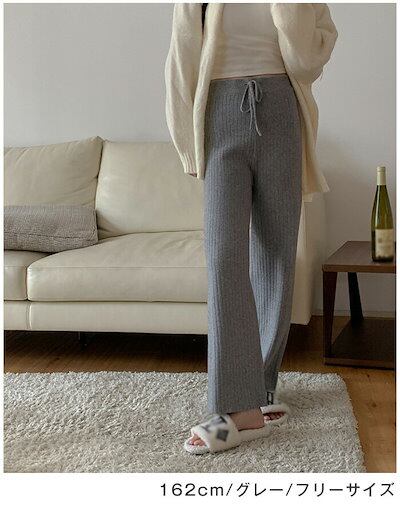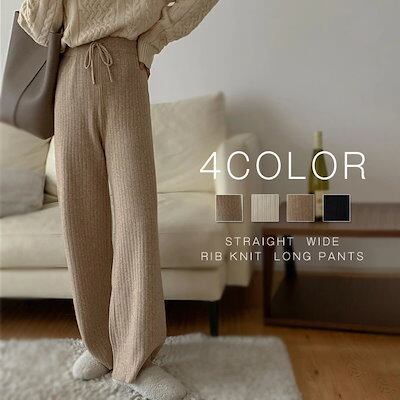 ニットパンツ リブニットワイドパンツ レディース 春 秋 冬 リブニット ワイドパンツ ガウチョ ウエストゴム ニット リブ ゆるパンツ リラックス 楽ちん ロングパンツ フレアパンツ ワンマイルウェ