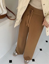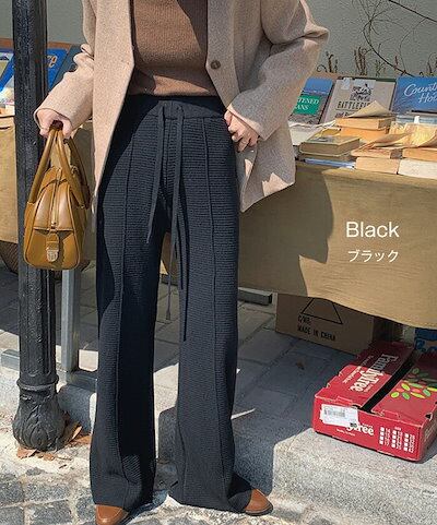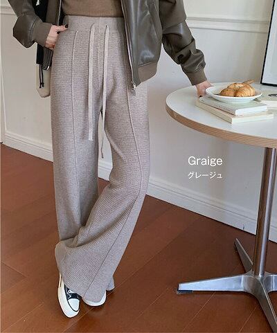 ワッフル ニット パンツ レディース ワイドパンツ ロング ロングパンツ ワイド ガウチョパンツ ゆる リブ ボトムス ズボン ボトム リラックス ゴム お洒落 楽ちん ワンマイルウェア ゆったり カ