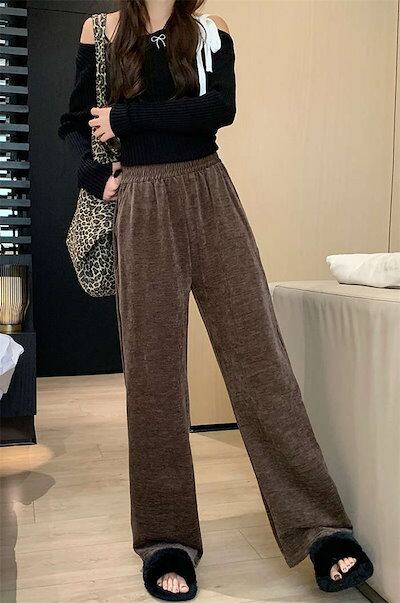 ワイド パンツ ベロア レディース ロングパンツ 光沢 ワイドパンツ ベルベット ガウチョ ズボン ストレートパンツ イージーパンツ ハイウェスト ウエスト総ゴム 部屋着 ジャージパンツ