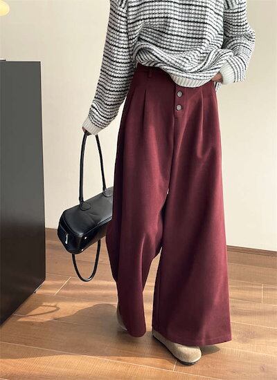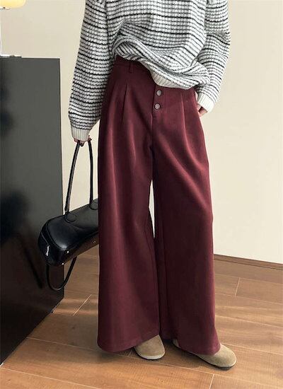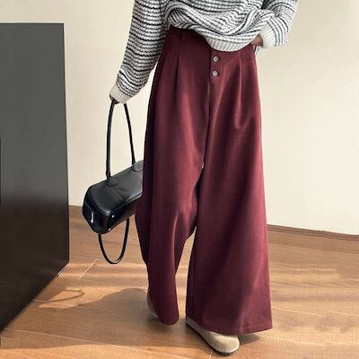 パンツ ワイドパンツ ボトムス レディース ガウチョパンツ ロング丈 ズボン 冬 秋 あったか タックパンツ カジュアル 抜け感 キレイめ 楽ちん 無地 おしゃれ ゆったり かわいい ウール ストレー