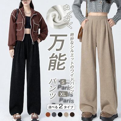 ワイドパンツ 冬 裏起毛 パンツ レディース 秋冬 パンツ ワイド ストレートパンツ ハイウエスト 高見え カジュアル 無地 あったか ガウチョ ボトムス ウエストゴム 大きいサイズ ロングパンツ 暖