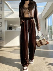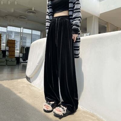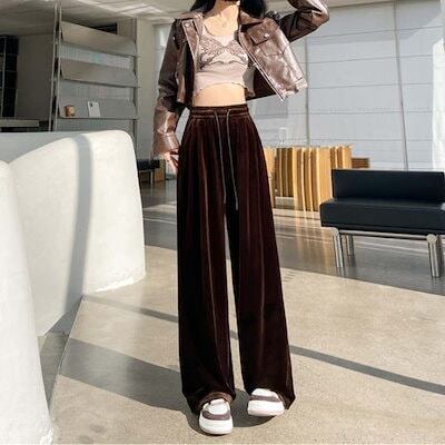 裏起毛パンツ レディース ベロアパンツ ワイドパンツ ガウチョパンツ ベロア ロングパンツ 無地 ロング丈 裏起毛 タック ゆったり 光沢感 ポケット付き ボトムス お洒落 冬 秋 イージーパンツ リ