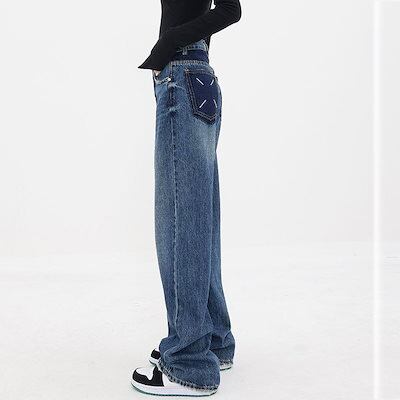 デニム パンツワイドパンツ涼感ワイドパンツ デニム調 フリル ベルト飾り ハイウエスト ウエストゴム ブーツカット レディース ガウチョパンツ 夏 秋 薄02 ひんやりボトムス