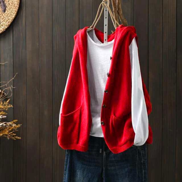 ニットベスト レディース ノースリーブ ニットパーカー フード付き ニット ベスト 前開き