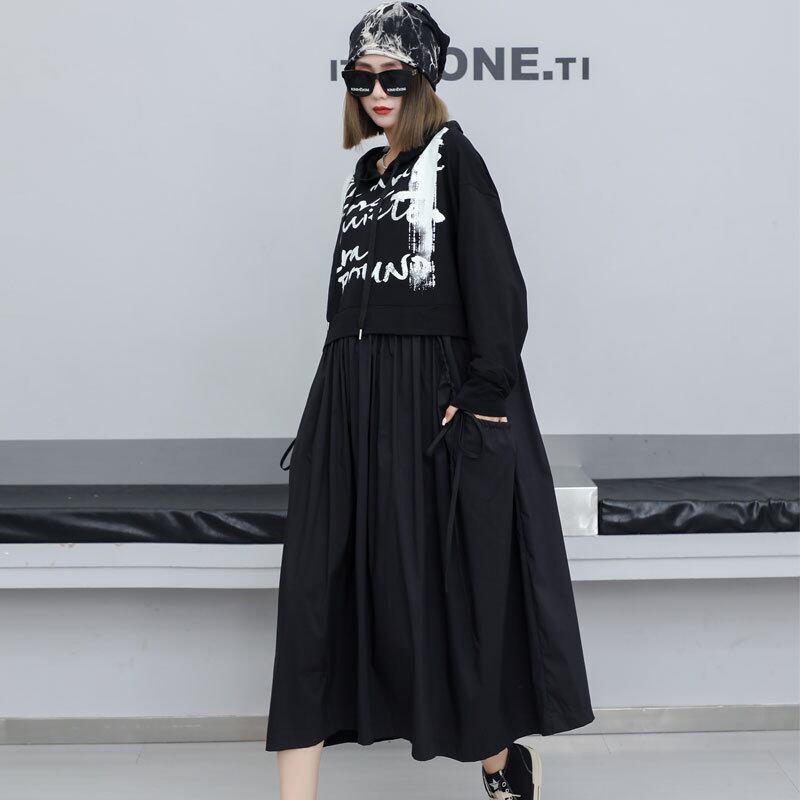 初回送料無料 新作レディースファッション 大きいサイズ パーカー風 フード付き 長袖ワンピース