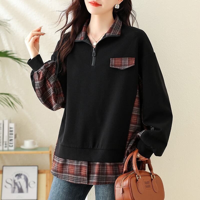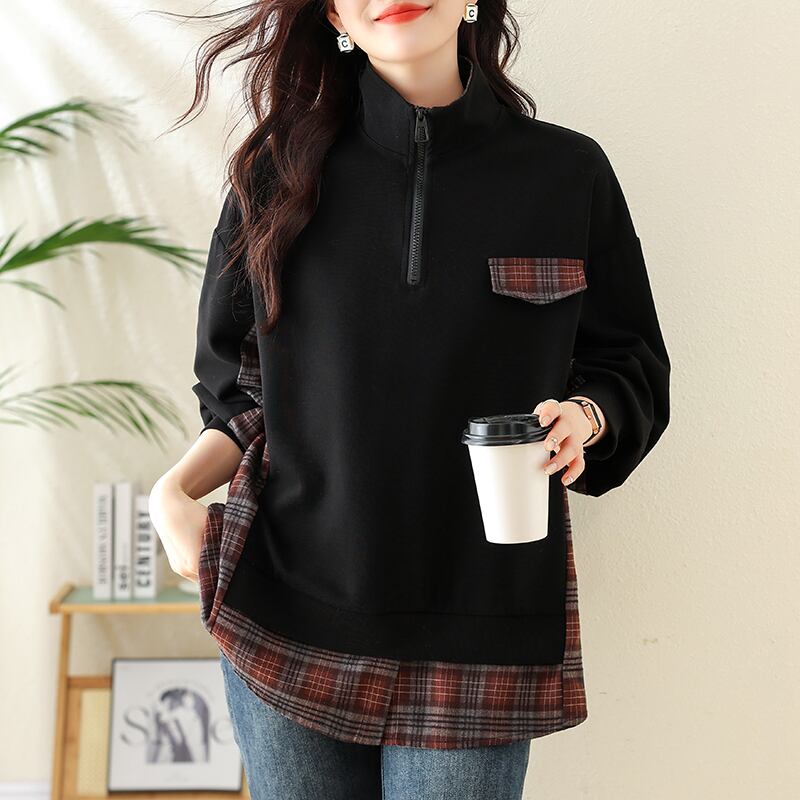 初回送料無料 秋冬レディースファッション フェイク2枚 パッチワークパーカー カジュアル トップス