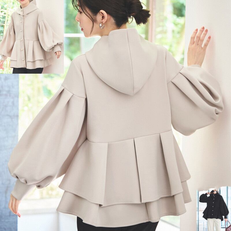 アウター コート ジャケット ブルゾン パーカー レディース ショット丈 帽子付き フレア 大人可愛い