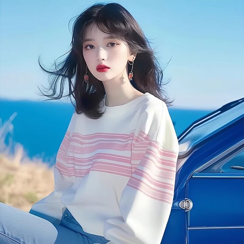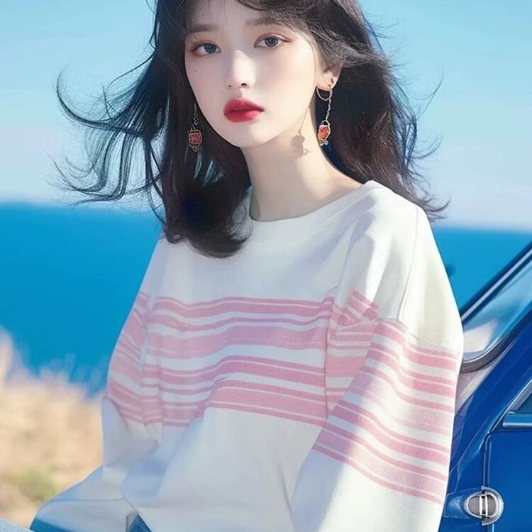 初回送料無料 新作レディースファッション オシャレ ゆったり パーカーストライプ 人気トップス