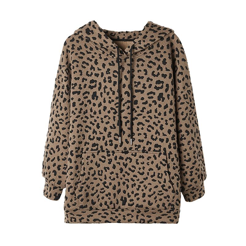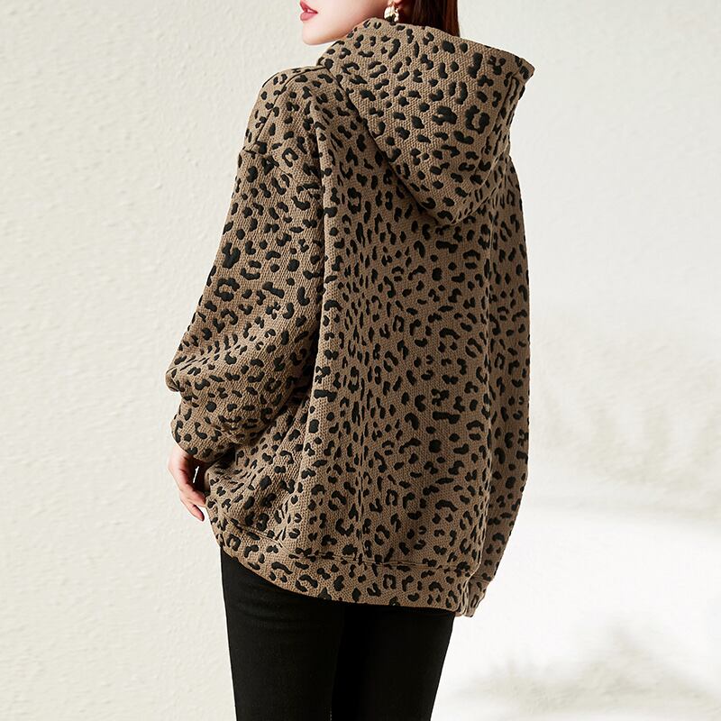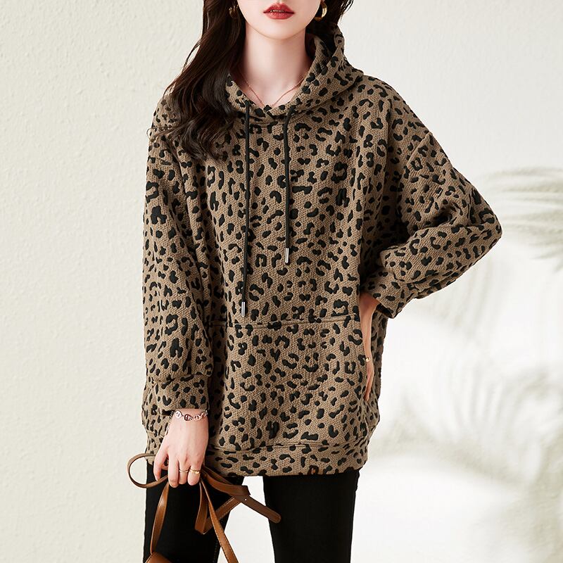 初回送料無料 レディースファッション カジュアル フード付き パーカー ヒョウ柄 トップス