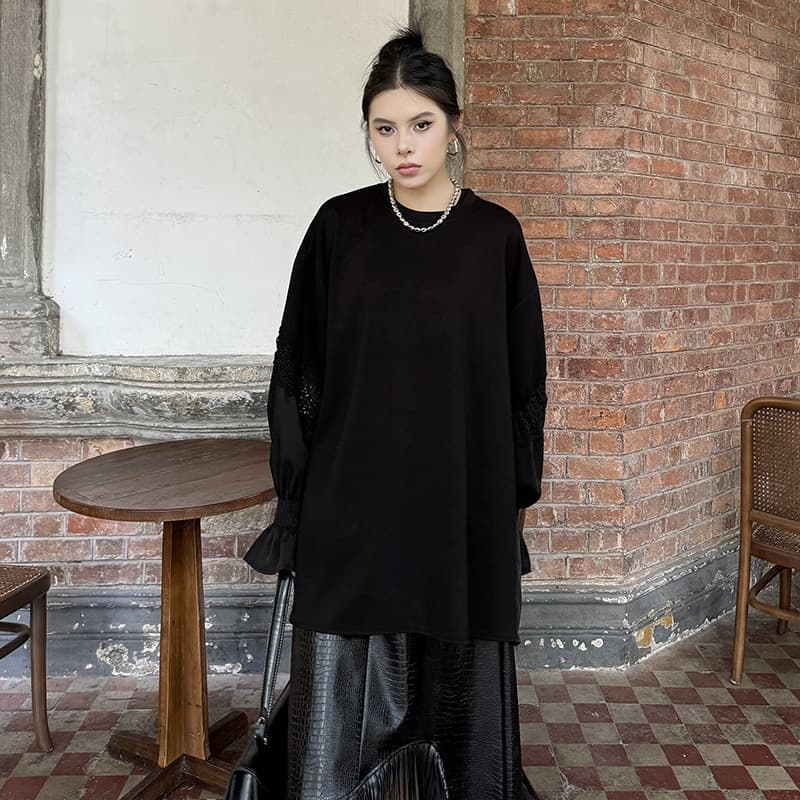 u25687 レディース レース パーカー クルーネック 2024秋冬新作 無地
