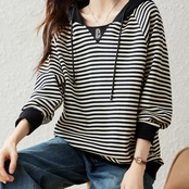 初回送料無料 レディースファッション フード付き カジュアル ストライプ パーカー トップス