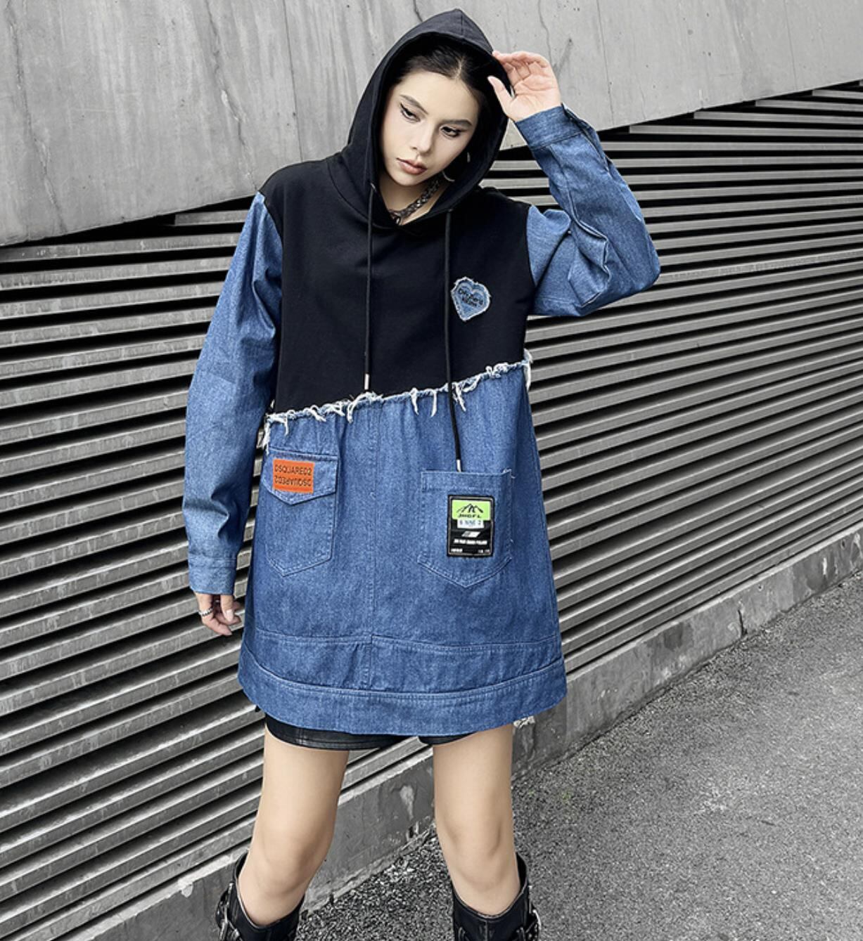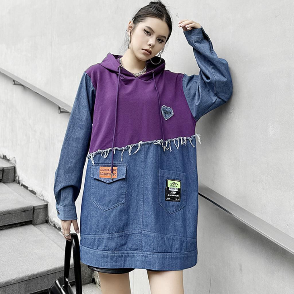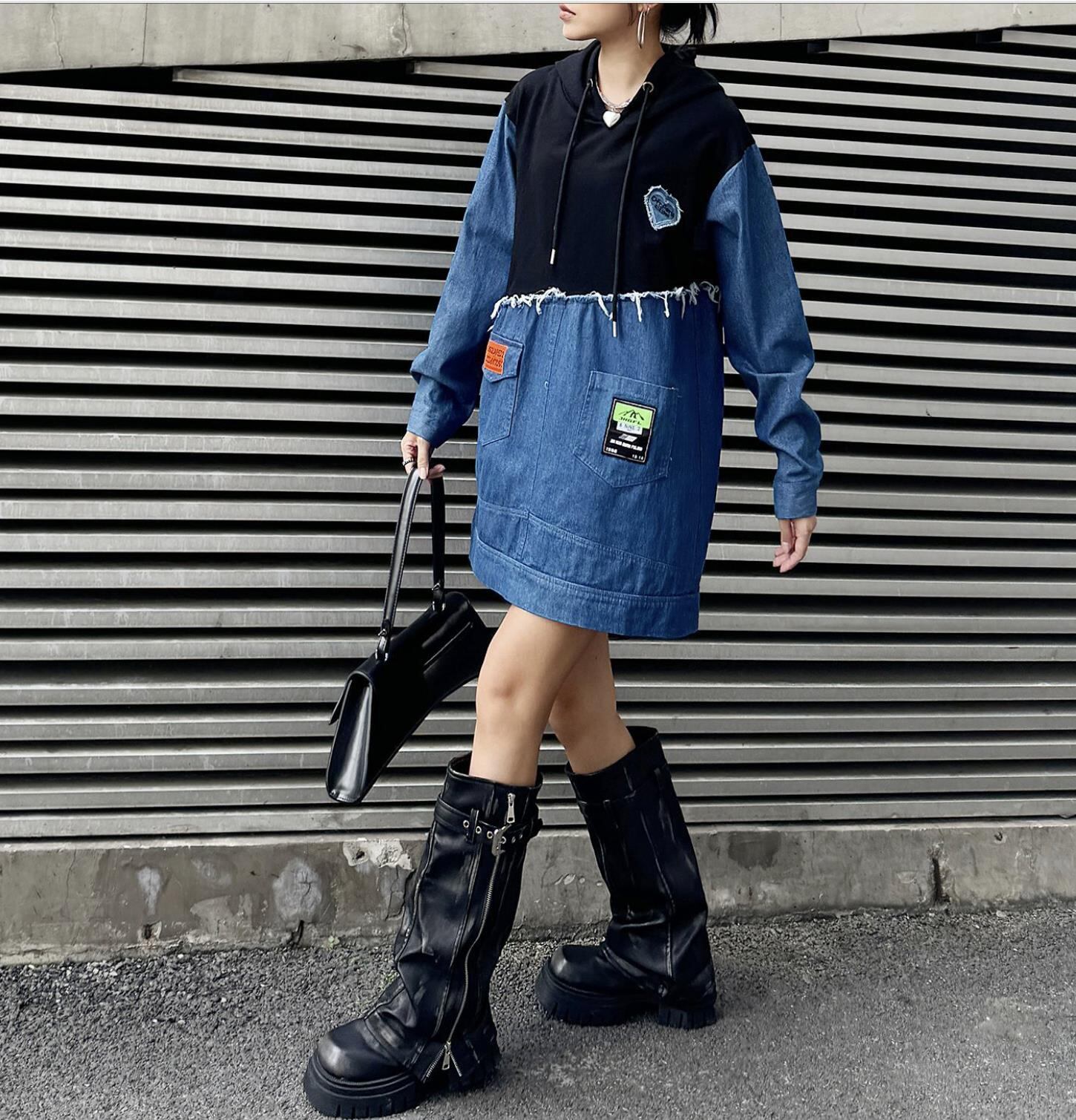 u25744 レディース パーカー ワンピース チュニック デニム カジュアル 2024秋冬新作