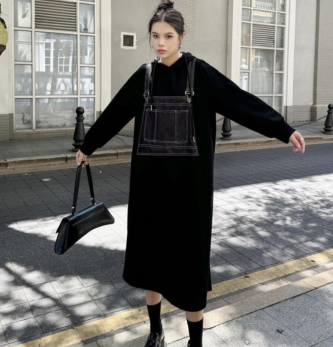 u25696 レディース ロングワンピース パーカー デニム 2024秋冬新作 帽子付き