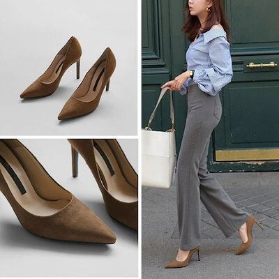メガ割 パンプス 靴 レディース ポインテッドトゥ 浅め スウェード ハイヒール ピンヒール オフィス 通勤 L 黒 青 グリーン ピンク イエロー 韓国35