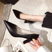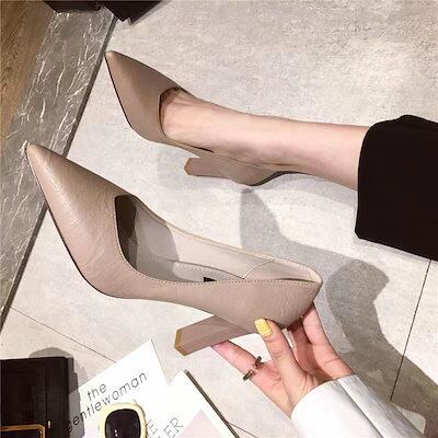メガ割 スタイルアップヒールパンプス 黒のハイヒールのプロの太いヒール尖った靴