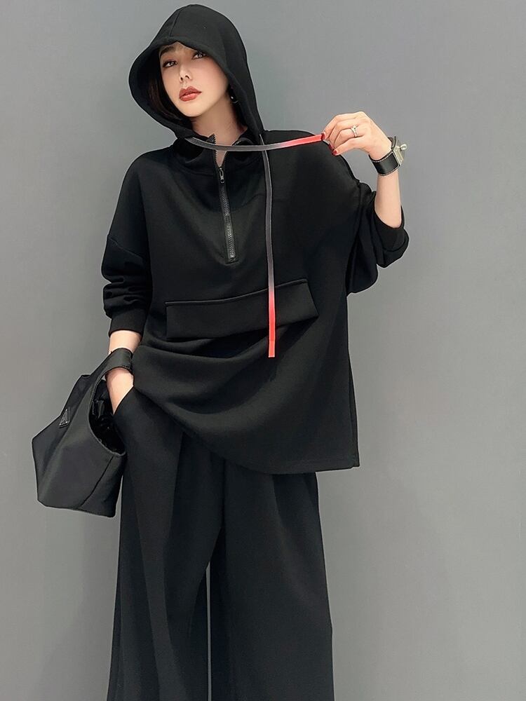初回送料無料 フード付きブラウスカジュアルパーカーとカジュアルパンツ2点セット 人気商品