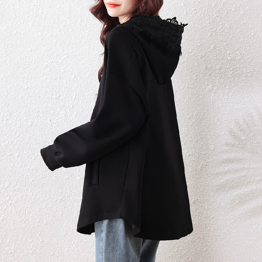 初回送料無料 レース付き上着 パーカー帽子付き 長袖ブラウス レディースファション商品