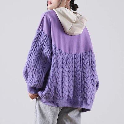 ニットセータートップスレディース秋服大きいサイズスウェット韓国ファッションパーカー長袖アウタージャケ