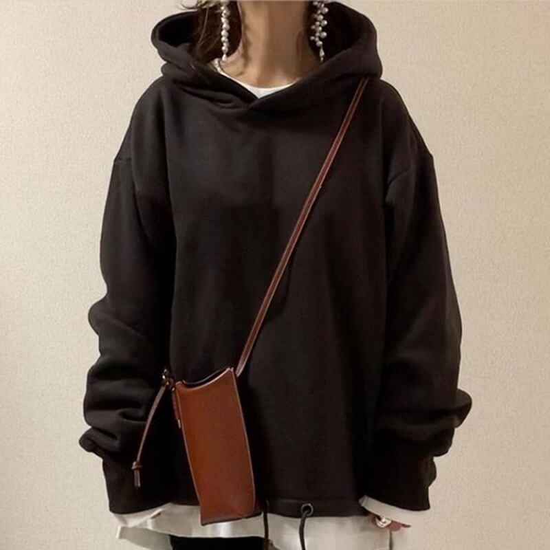 初回送料無料新作トップス秋冬ヘッダーゆったり長袖フード付きパーカーレディースファション服