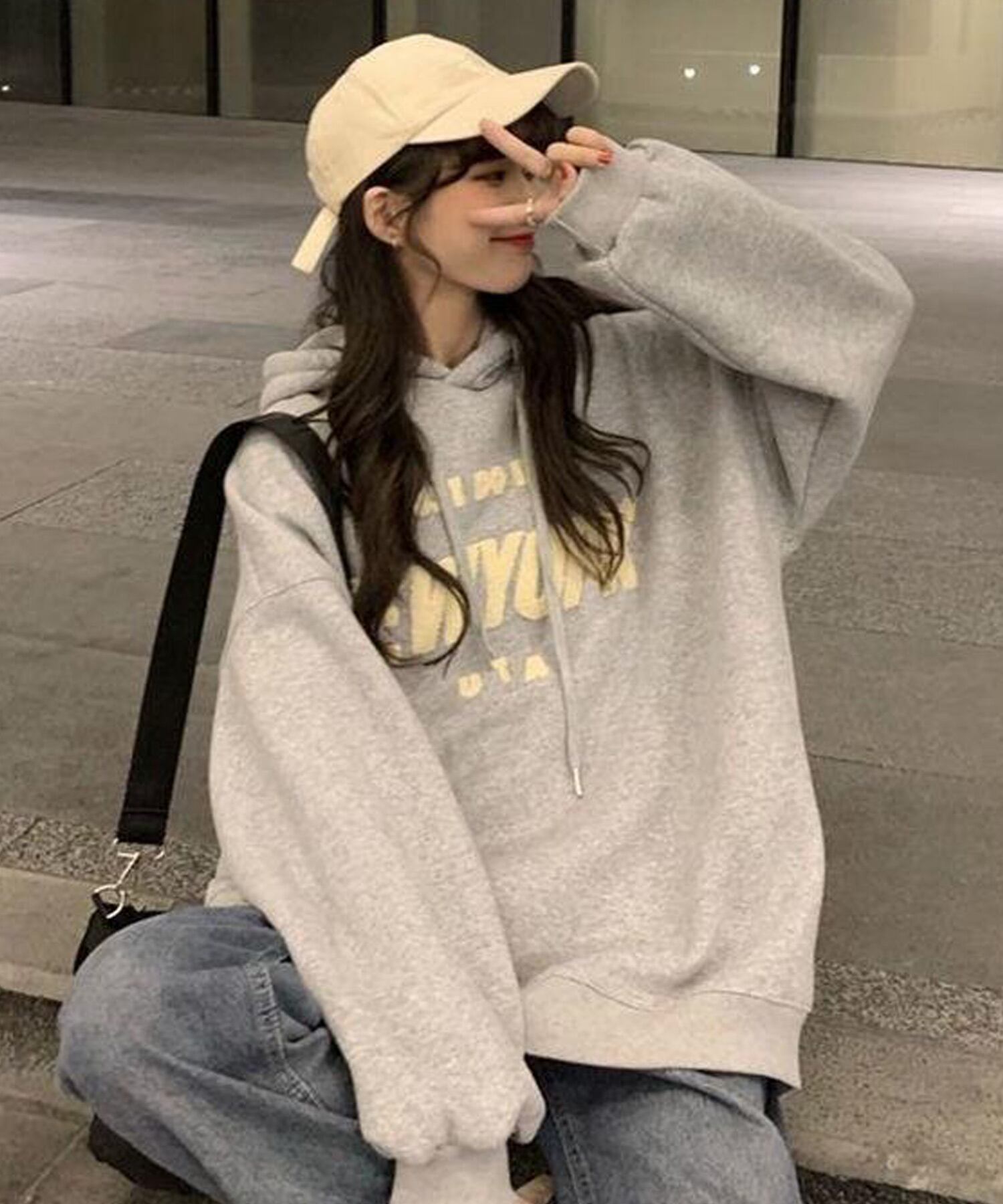 ビッグシルエット ロゴ フーディーパーカー 【即納】 レディース 韓国 プチプラ おしゃれ