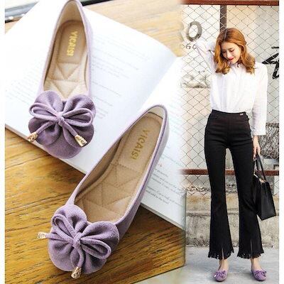 早く新品を選んで!パンプス レディース ローヒール 痛くない 柔らか 花飾り 花モチーフ リボン 可愛いコンフォートシューズ 大人 ローファー モカシン