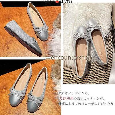 【本日のアップデート】パンプス リボン フラットヒール ラウンドトゥ バレエシューズ レディース おしゃれ 大人 カジュアル 歩きやすい 軽量 白 シルバー 美脚 大きいサイズ
