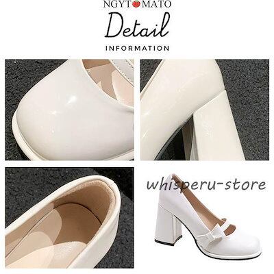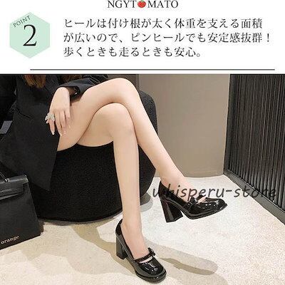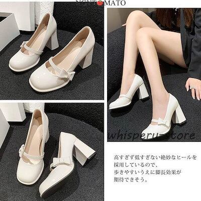人気商品,パンプス 太めヒール メリージェーン スクエアトゥ ストラップ付き リボン ハイヒール おしゃれ 可愛い 大人 カジュアル 歩きやすい 履きやすい 美脚 黒 白