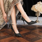 パールチェーンリボン女性ハイヒールウェディングシューズ
