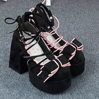 ヒールパンプス 甘く小柄なハイヒールlolitaオリジナルスエードフレンチバインダーリボンがエレガントなdoll感のプリンセスシューズ