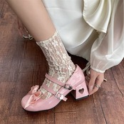 ヒールパンプス リボン厚底太ヒールメアリージェン靴女2025年パンプス