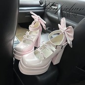 ヒールパンプス 2025オリジナルリボン中ヒール防水台ロリータシューズかわいい甘めカラーの優しい女の子の日系シングルシューズ