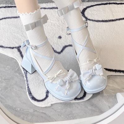 ヒールパンプス オリジナル中ヒール防水台ロリータシューズリボンがキュートで甘い少女日系シングルシューズ女性