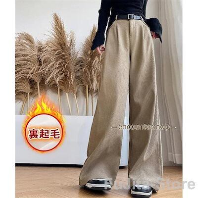 ワイドパンツ レディース 裏起毛 ストレート チノパン スラックス ガウチョパンツ ハイウエスト ゆったり ルーズ 防寒 着痩 服 暖か 通勤 通学