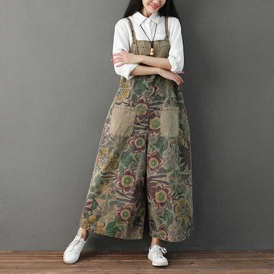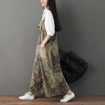 大きいサイズ ワイドパンツ レディーズ レトロスタイル ガウチョパンツ オーバーオール シンプル 脚長 のびる魔法の美脚