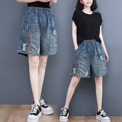 デニムパンツ 夏 ハーフパンツ レディース ショートパンツ キュロット ワイドパンツ きれいめ ガウチョパンツ スカーチョ バギーパンツ 大きいサイズ テーパードパンツ 無地 ウエストゴム 大人気 ボ