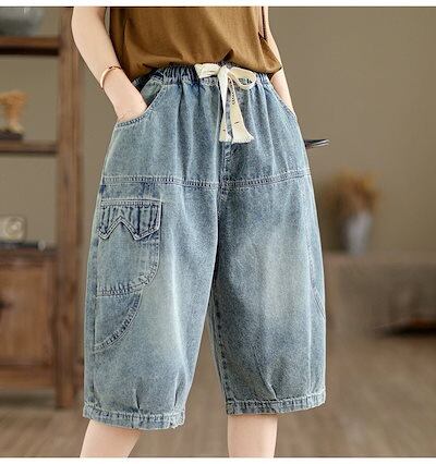 ボトムス デニム ショート ハーフパンツ レディース 夏 ハーフパンツ ショートパンツ デニムパンツ ワイドパンツ きれいめ ガウチョパンツ スカーチョ バギーパンツ 大きいサイズ カジュアル 切替え