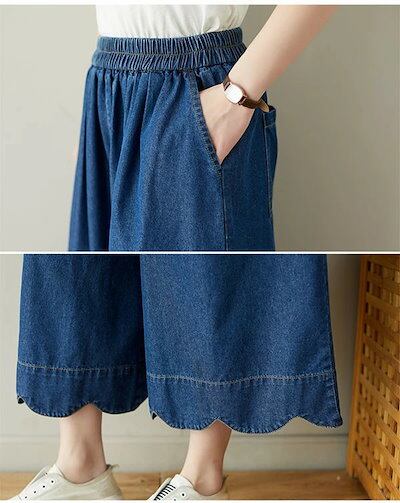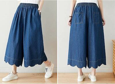 フレアガウチョパンツ ワイドパンツ ゆったり カジュアル 九分丈 ウエストゴム レディース 大きいサイズ 春 夏 30代 40代 50代 母の日 ギフト ブルー M L XL cm108t2t2c6