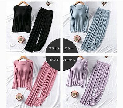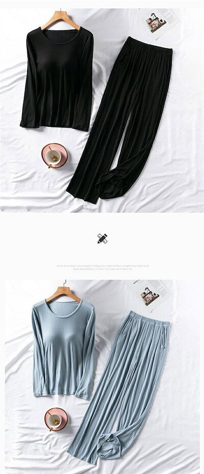 カップ付き パジャマ ルームウェア レディース 長袖 部屋着 パンツ セットアップ 2点セット 寝間着 ワイドパンツ ガウチョパンツ 大人 寝巻き 上下セット ロングパンツ 女性用 春 秋 冬 柔らか
