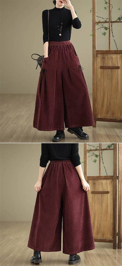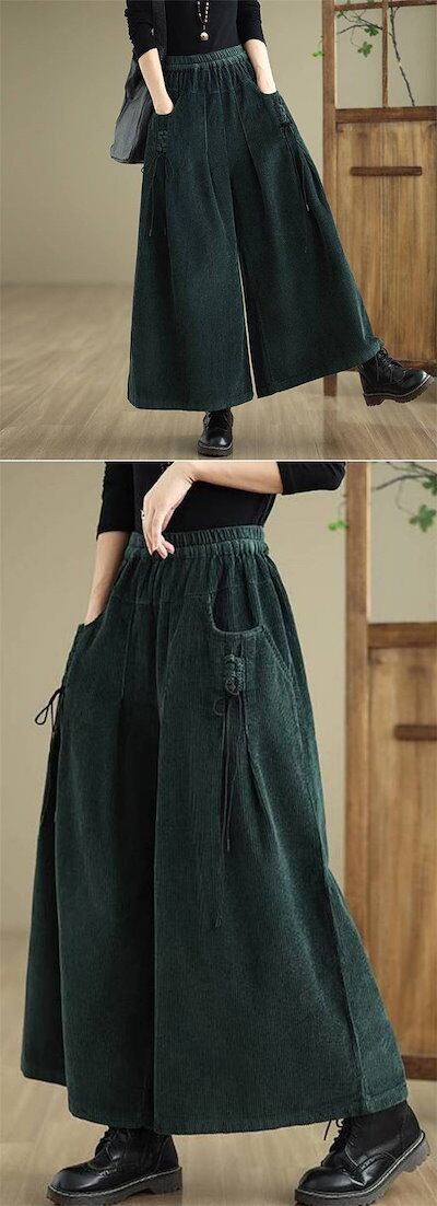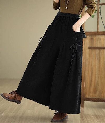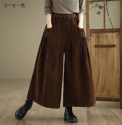 コーデュロイ ワイド パンツ レディース 新作 無地 ワイドパンツ ガウチョパンツ ボトムス コーデュロイパンツ ロング 9分丈 紐 ポケット デザイン感 ゆったり 秋 冬 カジュアル 体型カバー レ