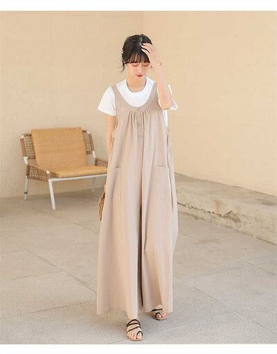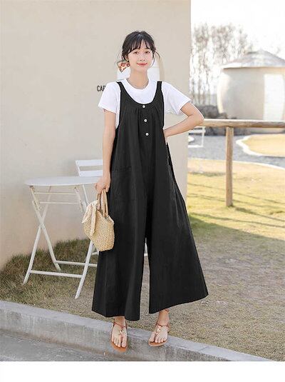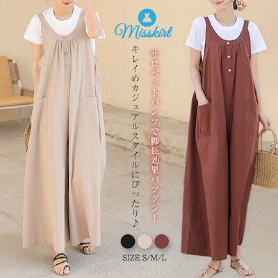 サロペット パンツ オールインワン レディース サロペットパンツ パンツドレス オーバーオール ワイドパンツ ガウチョパンツ ゆったり 体型カバー オーバーオール ノースリーブ つなぎ 無地 ロング丈