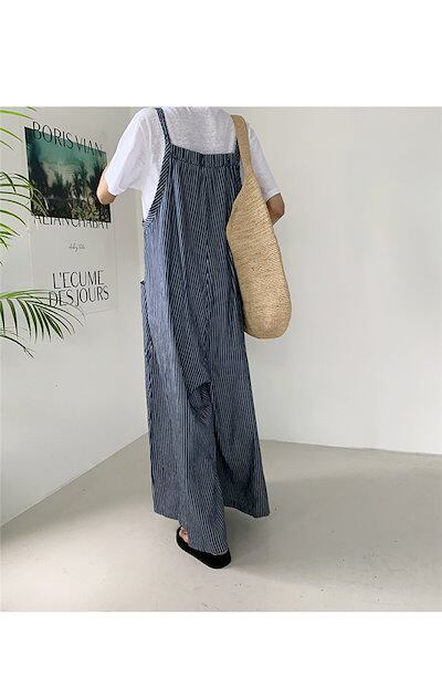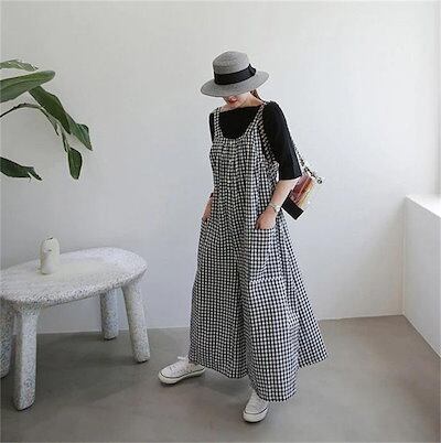 サロペット パンツ オールインワン レディース サロペットパンツ パンツドレス サロペット オーバーオール ワイドパンツ ガウチョパンツ ゆったり 体型カバー 着痩せ ストライプ チェック柄 きれいめ