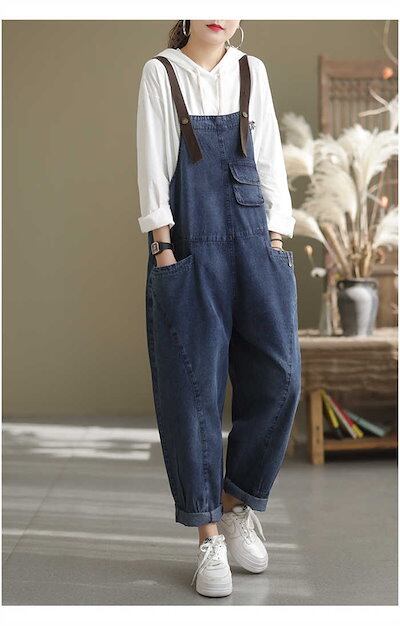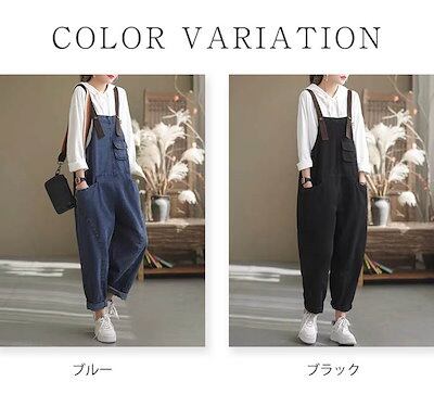 サロペット パンツ オールインワン レディース サロペットパンツ パンツドレス デニム デニムパンツ オーバーオール ワイドパンツ ガウチョパンツ ゆったり 体型カバー 着痩せ 無地 ロング丈 マキシ