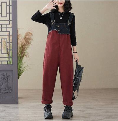 サロペット パンツ オールインワン レディース 新作 無地 サロペットパンツ パンツドレス デザイン感 オーバーオール ワイドパンツ ガウチョパンツ ゆったり 体型カバー 着痩せ ロング カジュアル