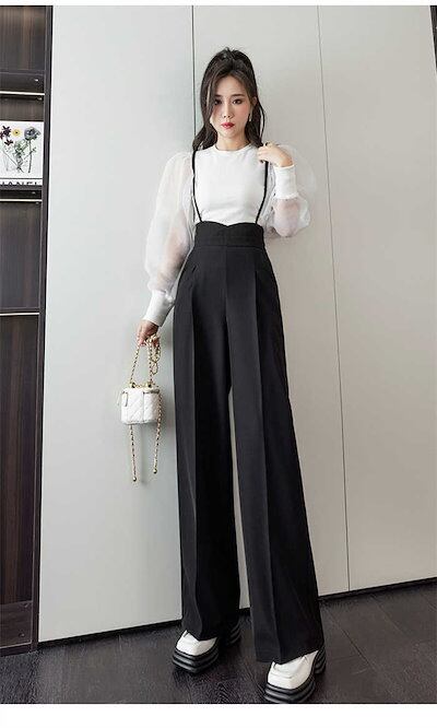 サロペット パンツ キャミソール パンツ レディース オールインワン サロペットパンツ パンツドレス ボトムス ロング パンツ ワイドパンツ ガウチョパンツ ハイウエスト 通勤 OL カジュアル 体型