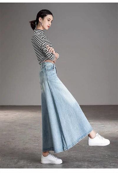 デニム パンツ ワイドパンツ レディース ガウチョパンツ ロング丈 パンツ 体型カバー 無地 大きいサイズ ボトムス ラシャ デニム 着痩せ 美脚 おしゃれ カジュアル ロングパンツ 春 夏 秋 美脚