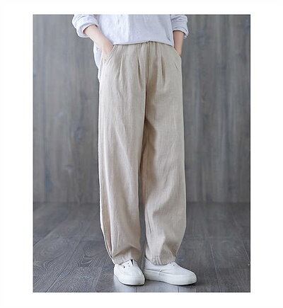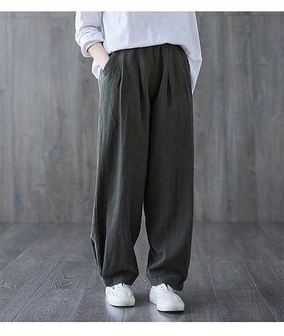 パンツ ロングパンツ テーパードパンツ サルエルパンツ ワイドパンツ バルーンパンツ ボトムス レディース ズボン ガウチョパンツ ウエストゴム 美脚 リネン 綿麻 コットンリネン 無地 着痩せ 30