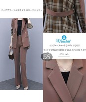 パンツスーツ レディース パンツドレス パンツセットアップ テーラードジャケット 2点セット ワイドパンツ ガウチョパンツ バックギャザー バックプリーツ 異素材 チェック柄 フォーマル 通勤 セレモ